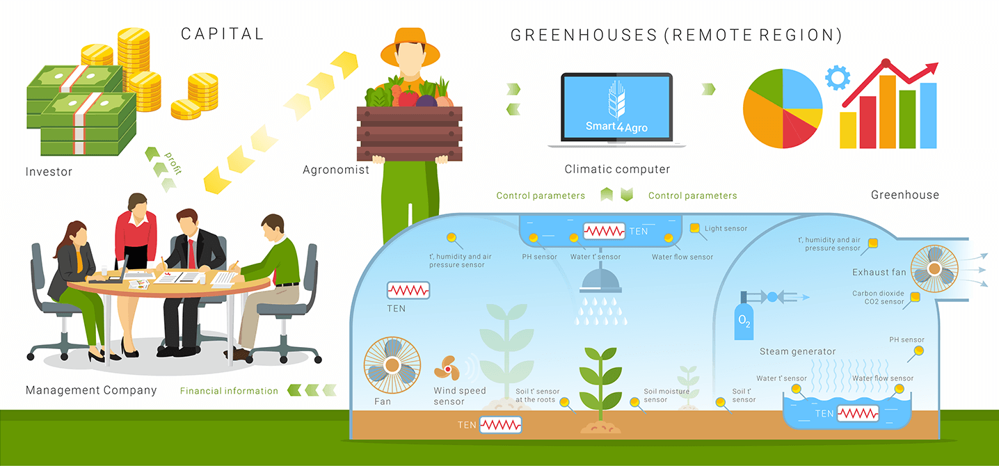 A digital copy of greenhouses is being built taking into account the most important parameters that affect the quality of the crop. Any changes to the model allow you to get a forecast and answer the question: what if?