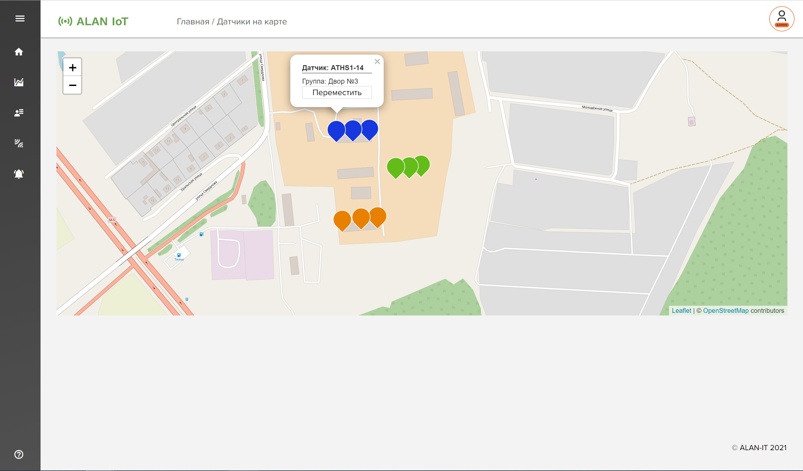 ALAN-IT has developed the ALAN IoT Application IoT service, designed to collect, receive, transmit and process data from various devices, monitor incoming information, analyze data received from devices and systems, work with users, configure and send various notifications, display information and current data from devices on the map.