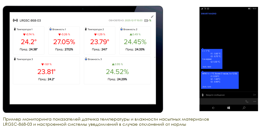 Датчик температуры и влажности насыпных материалов LRGSC-868-0X (модульный)